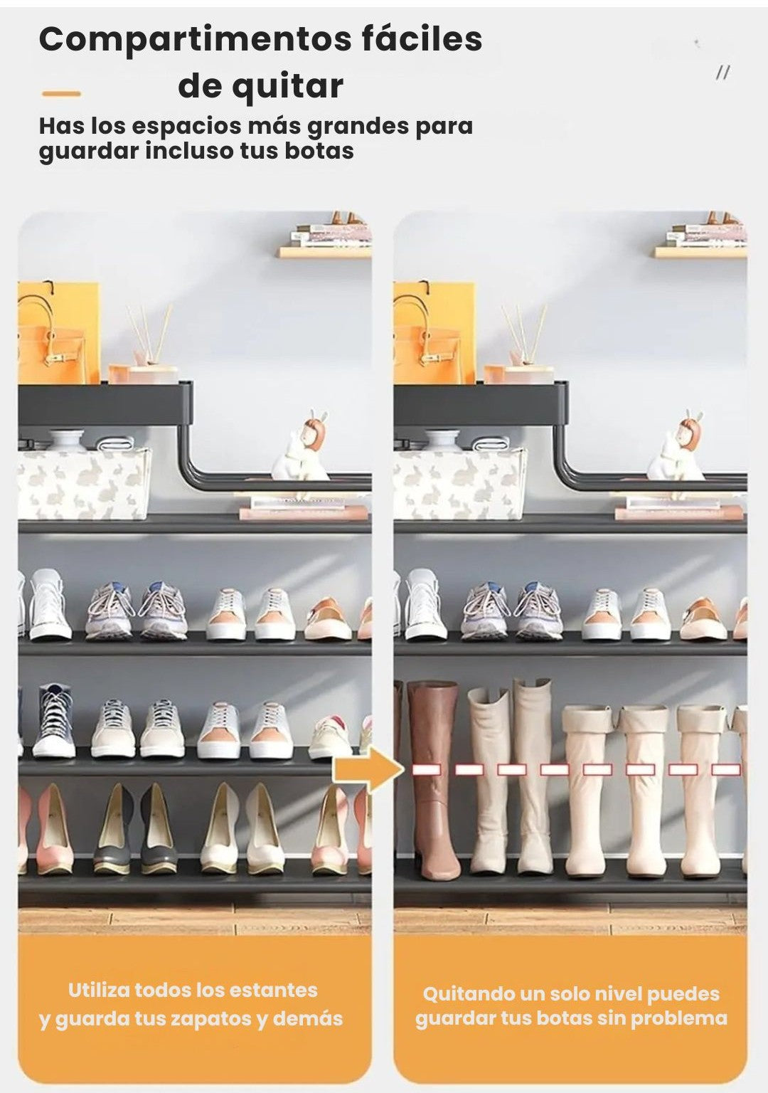 Cada par tiene su lugar, tu casa se ve más limpia y tú ganas espacio útil. ¡Empieza hoy mismo a disfrutar de un ambiente más cómodo y organizado!